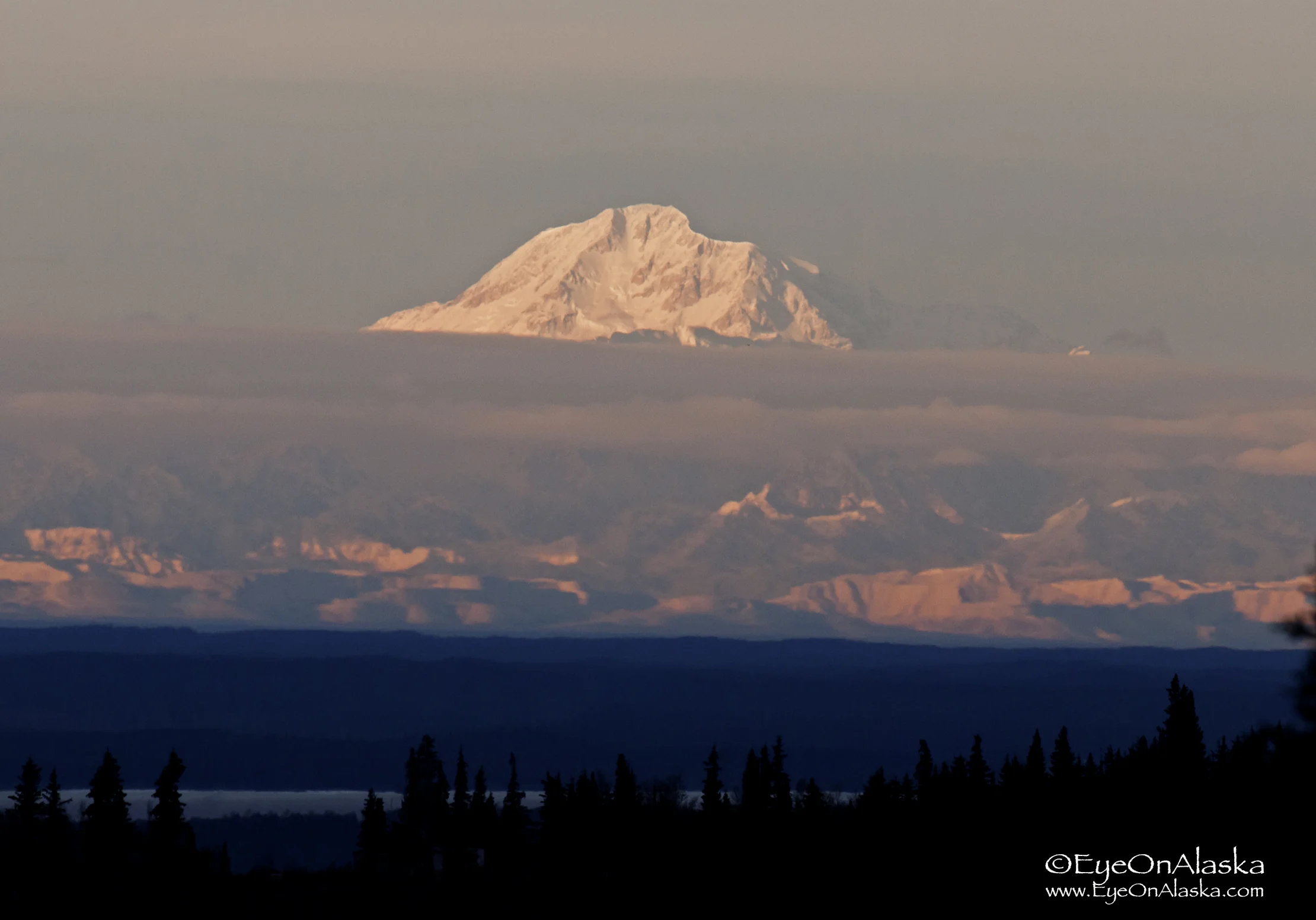 The mountain is really out this afternoon, glowing in the setting sun. Tonight hoping for clear skies and strong aurora.