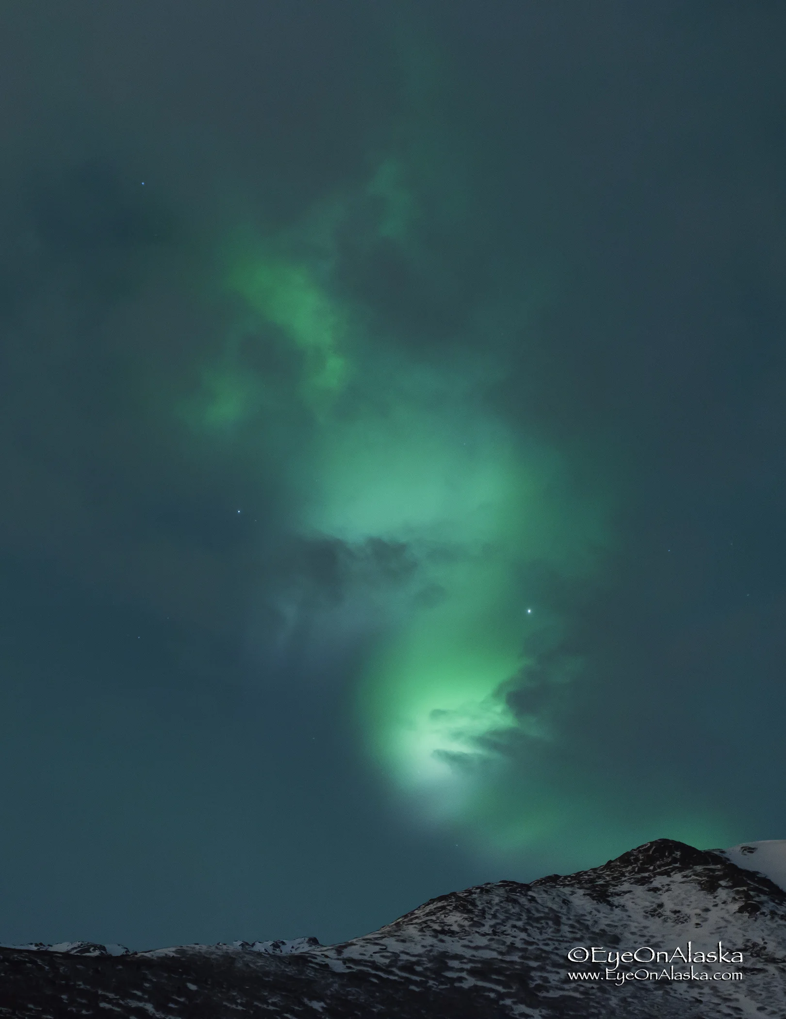 Got back to Alaska around 10pm from a week spent visiting friends and family in Wisconsin, and Lady Aurora decided to put on a nice show for my return. These were shot between 11pm and midnight. Quite a few clouds and a bright moon, but it was very strong for just a short burst. The rest of Alaska got an incredible show last night where it was clear. It's good to be home.