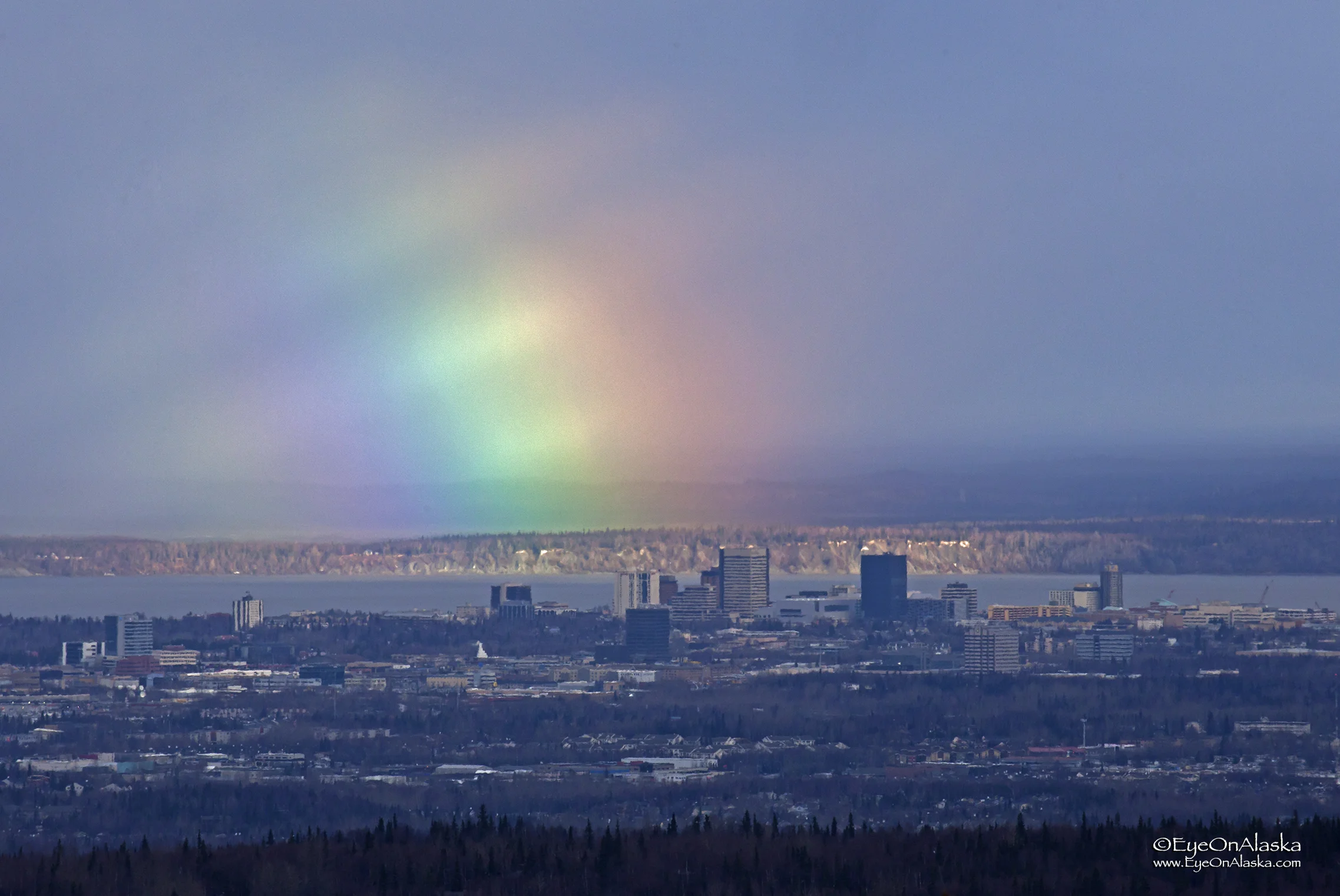 It's been fairly dreary the last several days, so it was was nice to have this little bit of drama behind downtown Anchorage this morning. It didn't last long.