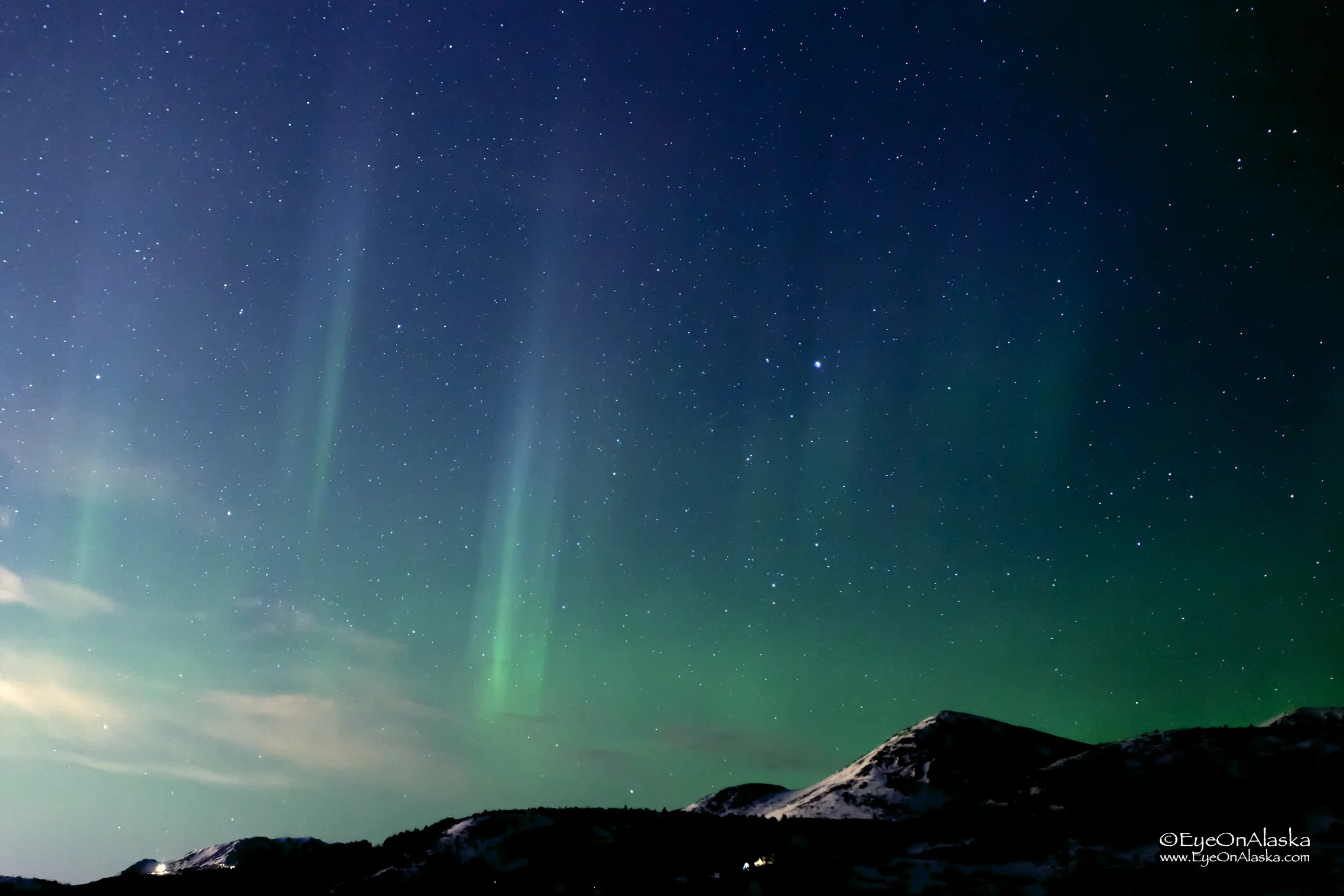 Stayed up all night again for what was forecast to be another big show. Hah! Lady Aurora teased me all night long. She'd get just strong enough for me to put all my winter gear on and head outside to shoot--and she'd disappear! I'd wait patiently for a half-hour or so, give up and go back inside, take off all my gear, and sure enough, there she was again--whispering to come back outside. Repeat this scene over and over until 4 am. This was the only decent shot I got all night around 12:30 am, but you can bet I'll be out there again tonight because the forecast is really strong :)